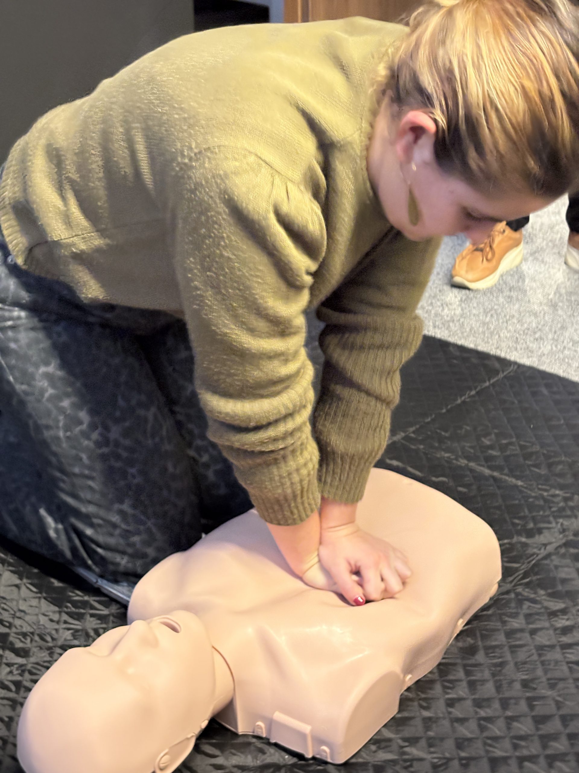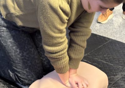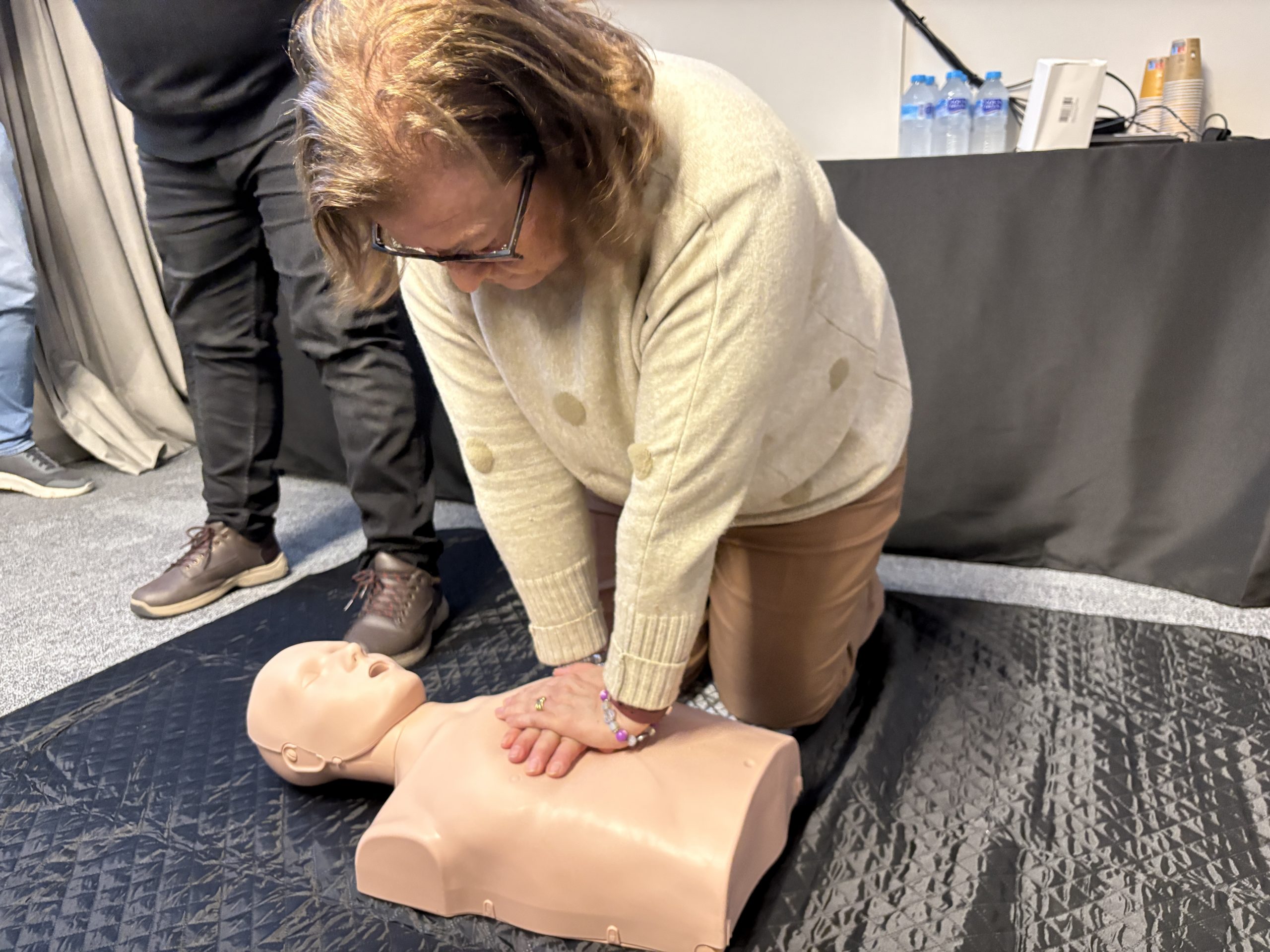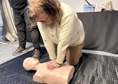 El corazón de la jornada fue, sin duda, la formación práctica. Gracias al uso de maniquíes de simulación avanzada, nuestros voluntarios pudieron practicar la Reanimación Cardiopulmonar (RCP) en un entorno seguro. Esta metodología es crucial, ya que permite corregir en tiempo real aspectos como el ritmo y la profundidad de las compresiones gracias a la retroalimentación instantánea, transformando la teoría en una habilidad real y mecánica. La confianza ganada sobre la alfombra de prácticas asegura que, ante una emergencia real, nuestros equipos sabrán mantener la calma y actuar con eficacia.