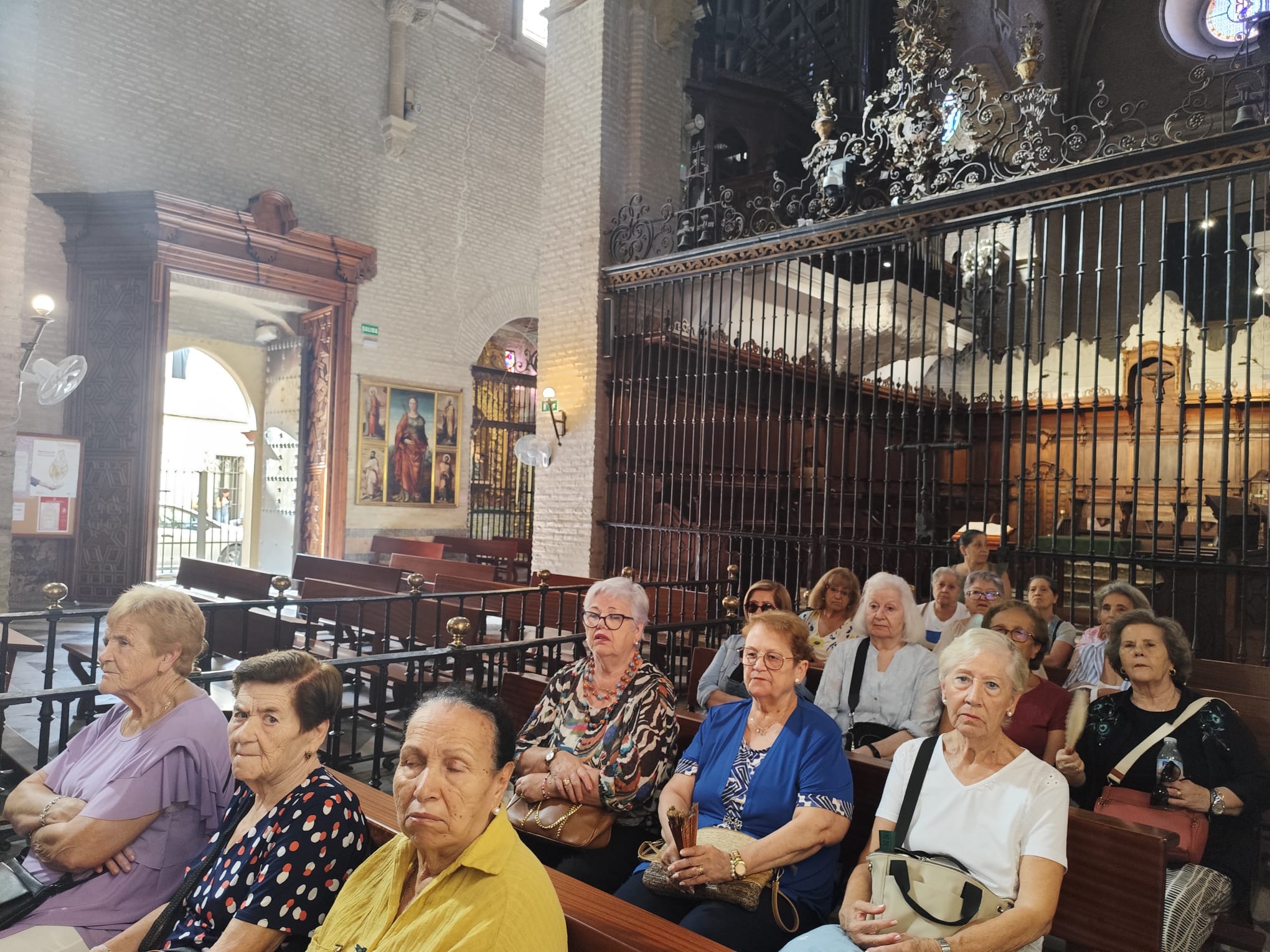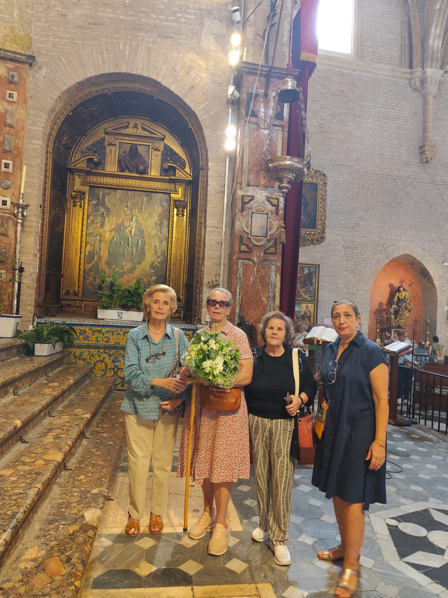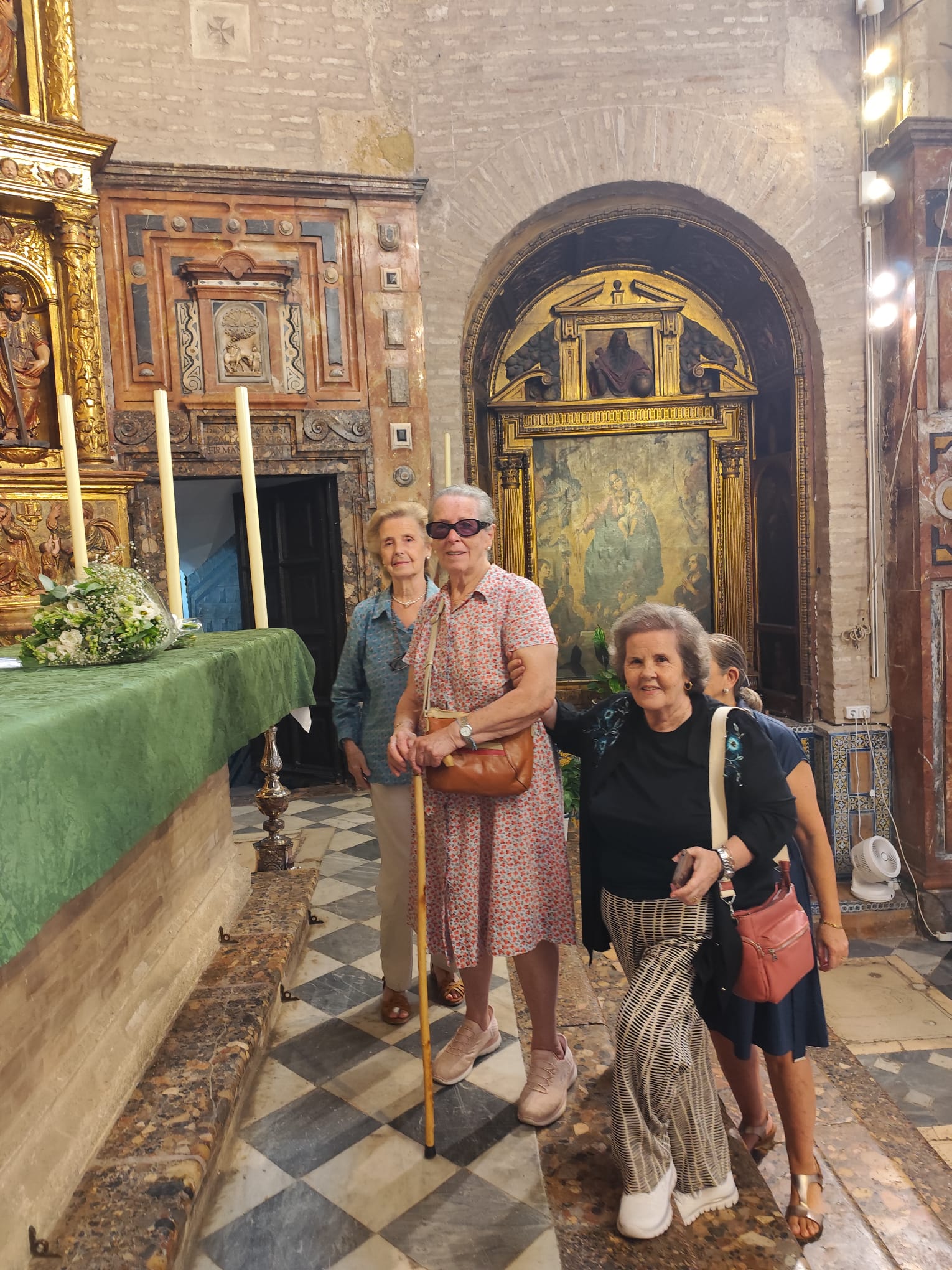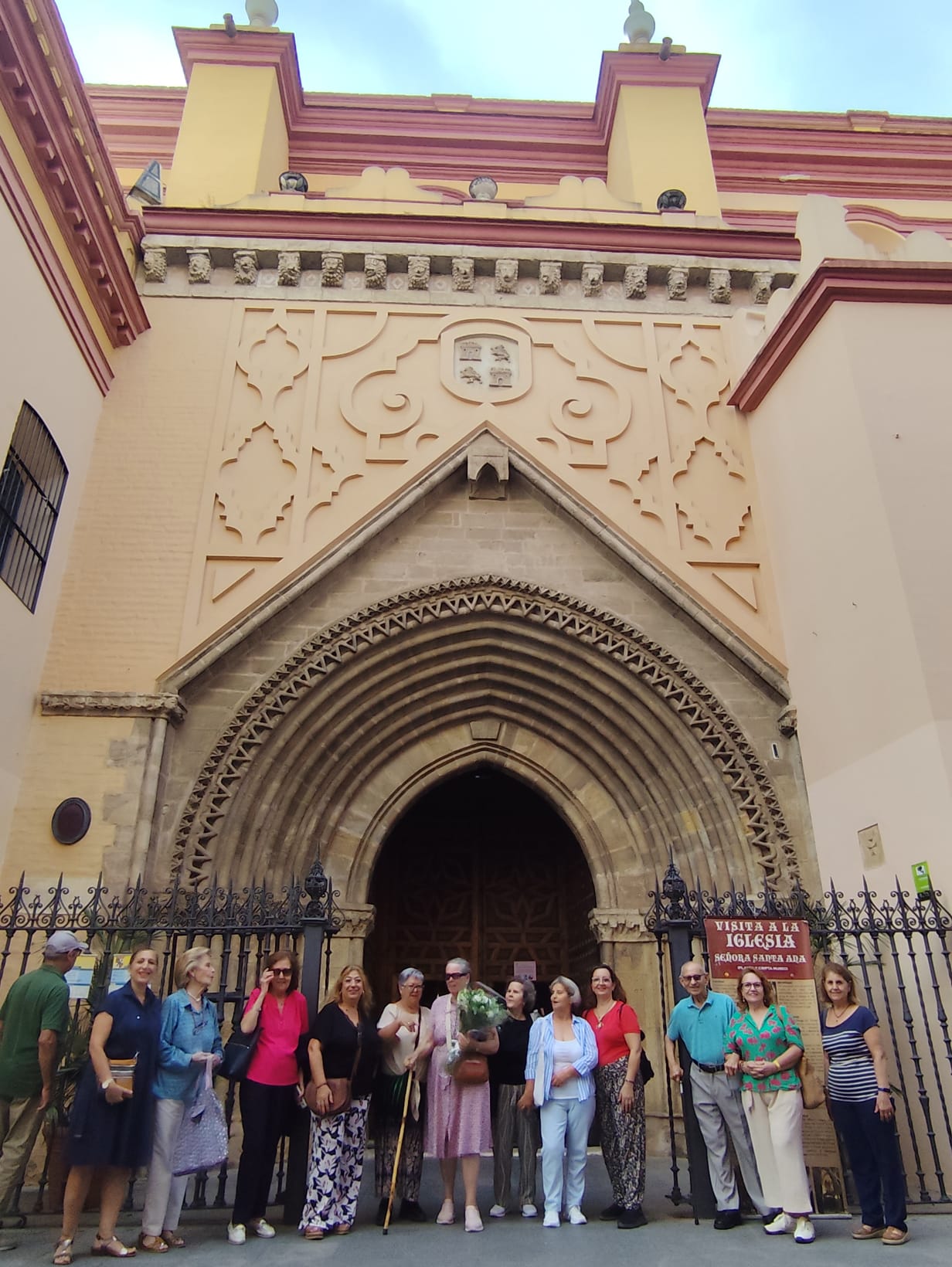Cerca de 45 de nuestros mayores que participan de las actividades del Centro Social de Los Pajaritos han disfrutado hoy de una enriquecedora jornada cultural con una visita especial a la histórica Parroquia de Santa Ana en el barrio de Triana, Sevilla. Acompañados por voluntarias de Prodean, los mayores llevaron un hermoso ramo de flores a la Virgen de la Victoria, Patrona de los Sastres, cumpliendo así con una emotiva tradición. Este gesto marcó el inicio de una mañana llena de historia, fe y compañerismo en uno de los templos más emblemáticos de la ciudad.