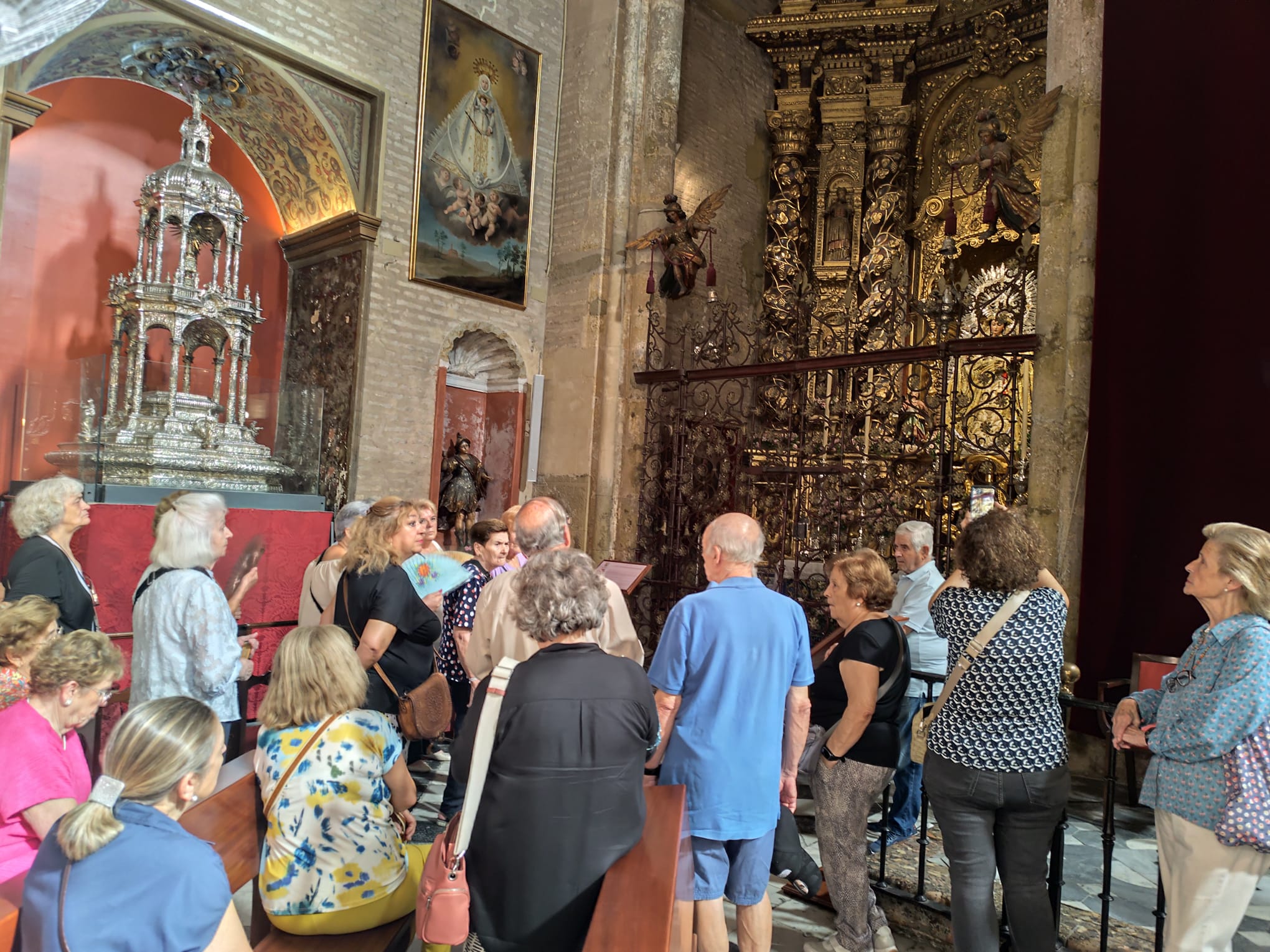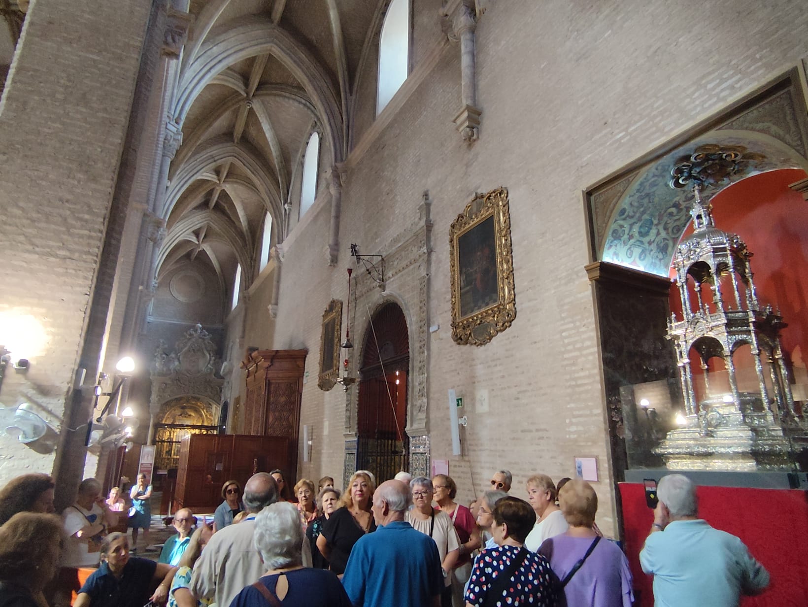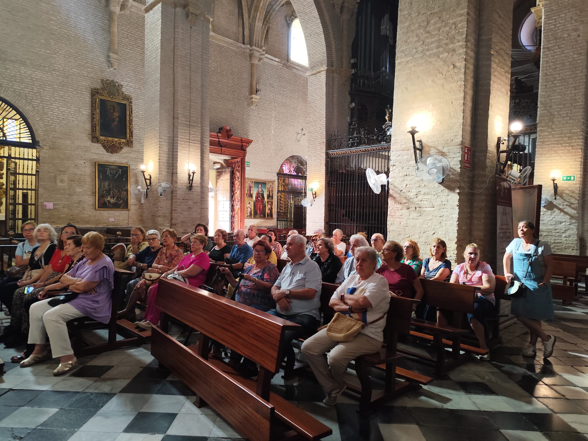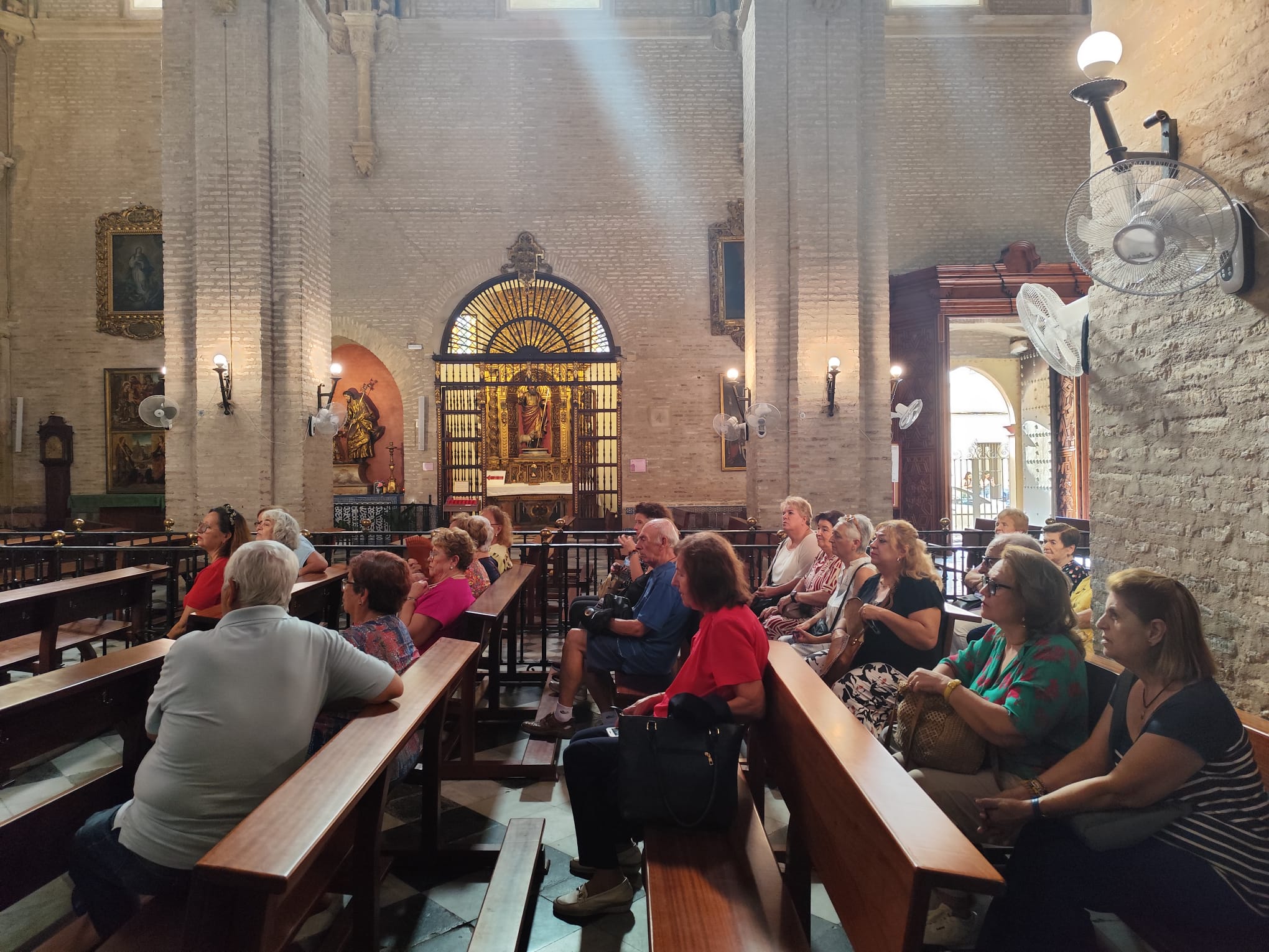 La visita incluyó un recorrido guiado que permitió a los mayores adentrarse en la antigüedad de la conocida popularmente como «Catedral de Triana». La construcción de la iglesia comenzó nada menos que en 1266, por orden del rey Alfonso X el Sabio, lo que la sitúa con más de 750 años de historia. Los usuarios pudieron conocer de primera mano los detalles arquitectónicos y las leyendas de un monumento que ha sido testigo mudo de siglos de vida sevillana. La experiencia fue profundamente apreciada por los mayores, quienes comentaron en varias ocasiones lo mucho que disfrutaron sumergirse en este viaje al pasado.